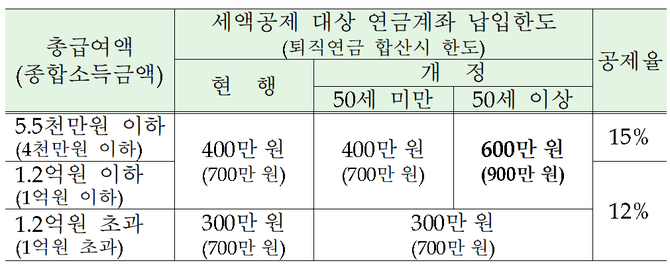 노후대비가 필요한 50세 이상자에 대해 세액공제 대상 연금계좌 납입한도가 3년간 한시적으로 상향조정됐다.