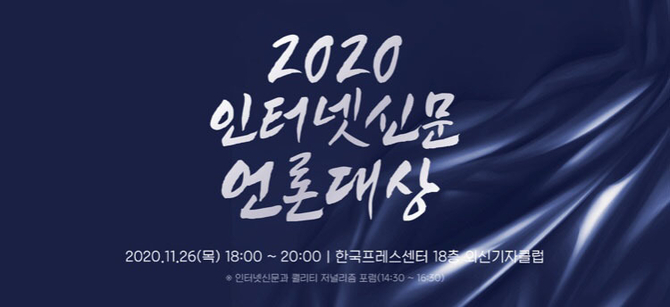 이번 '2020 인터넷신문 언론대상' 시상식은 오는 26일 진행될 예정이다.
