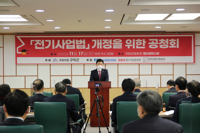 구자근 국민의힘 의원(경북구미갑)이 11월 17일 화요일 오전 9시 30분 국회의원회관 제3세미나실에서 “전기사업법 개정을 위한 공청회”를 개최했다. 공청회는 전국경제인연합회, 중소기업중앙회, 한국경영자총협회 등 경제단체들이 공동 주관했다.