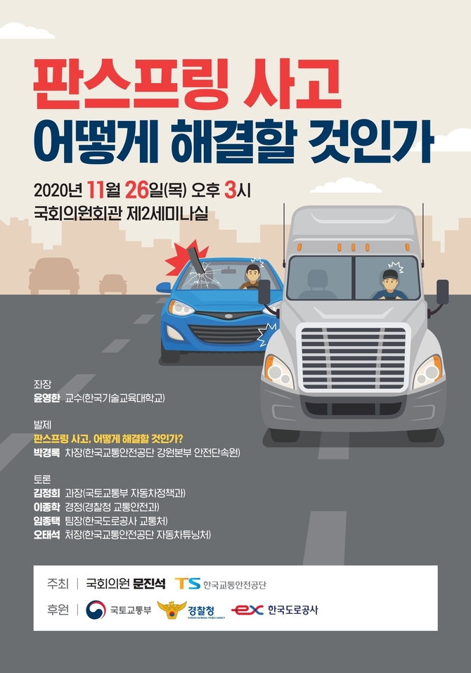 문진석 의원은 “정부, 관계기관 실무자와 학계 전문가가 모여 판스프링 사고 방지를 위한 실효성 있는 대책을 논의하는 자리가 될 것”이라고 말했다.