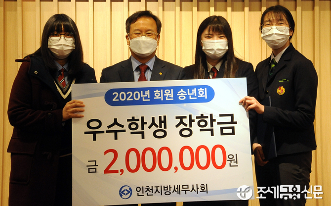 이날 인천지방세무사회 회원 송년회에서는 지방세 발전에 기여한 공로로 박남춘 인천시장으로 전달받은 기관 표창장을 유윤상 부회장이 대리 전달했다. 이어 인천세무고등학교 2학년 김예진, 1학년 조영림, 경기세무고등학교 2학년 김주령 학생에게 장학금이 전달됐다.