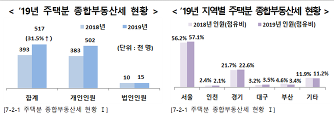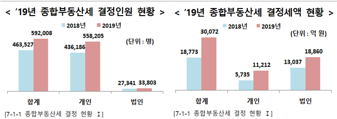 이 중 주택 ‘종부세’ 결정인원은 51만7000명으로 2018년보다 12만4000명(31.5%) 증가했다.