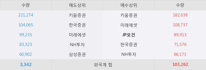 거래원 동향은 JP모건, 미래에셋, NH투자 등이 매수 상위 목록에 나타나고 있다.