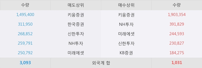 거래원 동향은 NH투자, 미래에셋 등이 매수 상위 목록에 나타나고 있다.