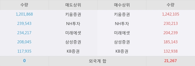 거래원 동향은 NH투자, 미래에셋, 삼성증권 등이 매수 상위 목록에 나타나고 있다.