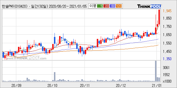 이 시간 차트의 흐름은 현재 단기·중기 이평선이 정배열 상태로 전형적인 상승세를 보이고 있다. 최근 이 종목의 차트에서 최근 60일 매물대 돌파 등의 특이사항이 발생했다.
