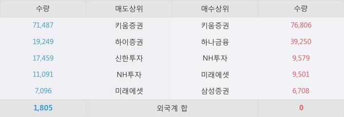 거래원 동향은 하나금융, NH투자, 미래에셋 등이 매수 상위 목록에 나타나고 있다.