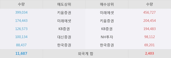 거래원 동향은 미래에셋, NH투자 등이 매수 상위 목록에 나타나고 있다.