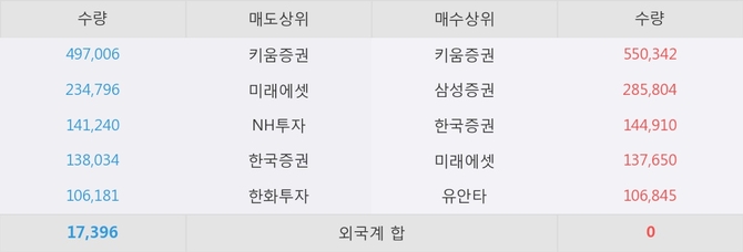 거래원 동향은 삼성증권, 미래에셋 등이 매수 상위 목록에 나타나고 있다.