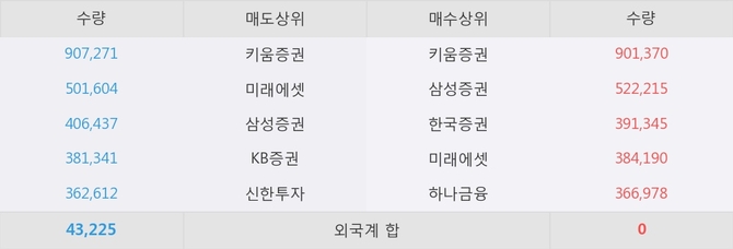 거래원 동향은 삼성증권, 미래에셋, 하나금융 등이 매수 상위 목록에 나타나고 있다.