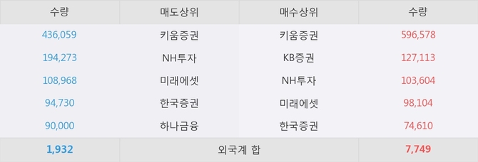 거래원 동향은 NH투자, 미래에셋 등이 매수 상위 목록에 나타나고 있다.