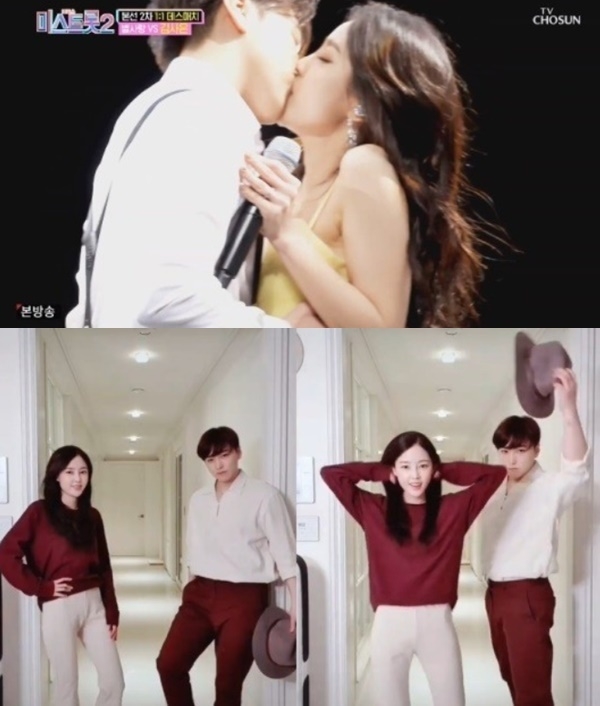 지난 7일 예고편에 이어 오늘(14일) 방송된 TV조선 '미스트롯2'에서 슈퍼주니어 성민은 아내 김사은 무대에 등장해 키스하는 장면을 연출, 눈길을 끌었다.