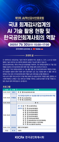 (조세금융신문=고승주 기자) 한국공인회계사회(회장 최운열)가 오는 30일 ‘제1회 AI혁신감사인증포럼’ 웨비나를 개최한다고 24일 밝혔다. 한양대 정태진 교수와 나현종 교수가 ‘국내 회계감사업계의 AI 기술 활용 현황 및 한국공인회계사회의 역할’을 주제로 회계감사업계의 AI 기술 도입 현황을 점검하고 한국공인회계사회의 향후 대응 전략을 모색한다. 종합토론에는 김기영 명지대 교수가 좌장을 맡아 회계법인 디지털 담당 파트너들과 기업 및 학계, 감독기관 등 각계의 전문가들과 함께 인사이트를 전달한다. 최운열 회장은 “이번 포럼은 AI 기술이 회계감사 분야에 미치는 영향을 조망하고, 우리 업계가 어떻게 이를 수용하고 발전시켜 나갈지 함께 모색하는 의미 있는 자리”라며, “AI 기술의 도입이 감사인의 전문성과 디지털 역량을 한층 강화하고, 신뢰받는 회계감사 체계를 구축하는데 새로운 전환점이 되기를 기대한다”고 말했다. 이번 포럼은 한국공인회계사회 홈페이지 팝업과 공지사항을 통해 사전 신청할 수 있으며, 포럼 후에는 회계사회 회계연수원 및 유튜브 채널에 영상을 업로드할 예정이다. [조세금융신문(tfmedia.co.kr), 무단전재 및 재배포 금지]