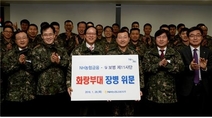 (조세금융신문=김사선 기자) NH농협금융지주 김용환 회장과 임직원들은 28일 강원도 홍천 육군 제11기계화보병사단 화랑부대를 방문하여 설 명절을 앞두고 국토방위의 막중한 임무를 수행하고 있는 군 장병들을 격려했다.혹한기와 설 명절을 앞두고 해마다 군부대를 위문 방문해 온 농협금융은 올해도 강원도 중동부 지역 방어에 중추적 역할을 수행하고 있는 11사단을 방문하여 위문금(품)을 전달하고 감사의 마음을 전했다.특히, 김용환 회장은 준비해온 간식(귤)을 장병들에게 직접 배식하고 점심을 함께하며 화랑부대 선배로서 군 생활 에피소드 등을 이야기하며 긍지와 자부심을 장병들에게 심어줬다. 김용환 회장은 격려 말을 통해 “북한 지뢰도발 및 핵실험 등 위중한 안보상황 속에서도 흔들림 없이 나라수호에 애쓰는 국군장병 여러분의 노고에 감사드리며 이번 방문이 추운 날씨 속에서도 국가와 국민을 지키기 위해 헌신하는 장병 여러분에게 조금이나마 위안이 됐으면 좋겠다.”고 말했다.한편, 농협금융은 “함께하는 명절나기”라는 테마로 설 및 정월 대보름이 속해 있는 2월 한 달 동안 농협은행을 비롯한 자회사를 통해 소외계층을 지원하는 다양한 사회공헌활동을 펼칠 예정이다.