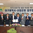 (조세금융신문=김사선 기자) 산업은행(회장 이동걸)은 12일 대구시청 본관 2층 상황실에서 대구광역시(시장 권영진)와 ‘대구 신성장기업 발굴·육성을 위한 업무협약’을 체결했다고 밝혔다. 산업은행은 "이번 업무협약은 산업은행의 ‘국가균형발전을 위한 정책금융 강화’와 대구시의 ‘신성장기업 육성’이라는 목표가 서로 일치함에 따라 체결됐다"며 "앞으로 대구시가 중점적으로 추진 중인 에너지, 미래형 자동차, 첨단의료 등 대구지역 신성장 산업과 기업의 육성을 지원할 계획"이라고 설명했다. 산업은행과 대구시는 이번 업무협약의 시너지 창출을 위해 양 기관 및 관계기관들이 참여하는 “대구 신성장기업 발굴·육성 협의회”를 구성하여 구체적인 실행방안을 수립·점검해 나가기로 했다. 특히 협력사업의 일환으로 산업은행 컨설팅 서비스를 활용하여 대구지역 신성장기업 금융지원 전략 수립에 착수키로 했다. 이동걸 산업은행 회장은 이날 인사말에서, “이번 업무협약은 정부와 지방자치단체가 추진하는 지역 특화산업 육성 정책을 적극 뒷받침하여 국가 균형발전을 도모코자 하는 취지”라며 “대구광역시가 추진하는 미래산업 육성 전략과 산업은행의 금융 노하우를 결합함으로써, 지역경제 활성화에 크게 기여하는