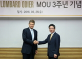 (조세금융신문=김사선 기자) KB국민은행(은행장 윤종규/www.kbstar.com)은 25일, 200년 역사의 스위스 PB 전문은행인 롬바드 오디에(Lombard Odier)와 전략적 업무제휴 확대를 위한 기념식을 개최했다고 밝혔다.이날 기념식에는 KB국민은행 WM그룹 김효종 대표와 롬바드오디에 빈센트 듀하멜 아시아 대표가 참석했다.KB국민은행은 전세계적으로 저성장 추세에 따른 고객 자산의 안정적 증식이 더욱더 중요해지고 있다고 판단하여, 3년 전부터 롬바드오디에와 KB국민은행 간 전략적 업무제휴를 맺고 자산관리 노하우 증진에 노력해 왔다. 이번 업무제휴 확대로 KB국민은행의 PB비즈니스 역량 강화 및 PB고객 대상 패밀리 비즈니스 구현을 위해 다양한 협력 방안들이 추진될 예정이다.우선 글로벌 PB전문은행인 스위스 롬바드오디에(Lombard Odier)와 KB국민은행이 공동 개발한’KB-LO 글로벌 PB양성 프로그램’을 내년부터 확대 시행한다.KB금융그룹의 자산관리 전문가를 대상으로 리스크 기반의 자산배분전략(Risk Parity기법 활용) 및 일임형 자산관리서비스, 포트폴리오 관리, Family Business 역량과 더불어 Out-Bound Marketi