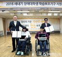 (조세금융신문=김사선 기자) KB국민은행(은행장 윤종규/www.kbstar.com)은 지난 12일, 여의도 이룸센터 이룸홀에서 올해 새내기 장애대학생 84명에게 학습보조기구를 전달했다고 밝혔다.제 36회 장애인의 날을 기념하여 개최된 이번 행사에는 KB국민은행 신홍섭 소비자브랜드전략그룹대표, 한국장애인단체총연맹 이병돈 공동대표, 장애대학생과 학부모 등 총 80여명이 참석했다. 이날 새내기 장애대학생에게는 노트북과 태블릿 PC를 비롯해 센스리더(화면낭독프로그램), 트랙볼마우스(지체·뇌병변장애인 사용) 등의 최신 학습보조기구가 전달됐다.KB국민은행은 장애대학생의 학습효율성 향상과 학업에 열중할 수 있는 교육여건을 만들어 주기 위해 2009년부터 총 946명에게 학습보조기구를 지원해왔다.노트북을 받게 된 한 대학생은 “대학교 합격소식의 기쁨도 잠시, 정상인 또래 학생들과 동등한 환경에서 학과공부를 제대로 할 수 있을지 걱정이 많았는데 노트북을 지원받게 되어 기쁘다”며 감사의 마음을 전했다. 신홍섭 소비자브랜드전략그룹 대표는“새내기 장애대학생들이 이번에 지원받은 학습보조기구를 적극 활용해서 이루고자 하는 꿈에 한걸음 더 가까이 다가가길 바란다”고 말했다. 한편, K