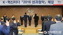 (조세금융신문=김사선 기자) 캠코(한국자산관리공사, 사장 홍영만)는 15일 부산국제금융센터(BIFC) 3층 캠코마루에서 홍영만 사장을 비롯한 임원과 지역본부장을 포함한 전 부점장이 참석한 가운데 캠코型 혁신의 추진과 성과주의 문화 확산을 위한 ‘K-혁신리더 2016 성과협약식’을 개최했다.이번 협약식에서 홍영만 사장과 혁신리더(부점장) 간 2016년 혁신경영을 위한 성과협약을 체결하고, 공사의 새로운 도약과 국민에게 사랑받는 최고의 공공기관이 되기 위해 혁신경영에 나설 것을 다짐했다.행사는 전 부점장들의 혁신경영 다짐 선언문 낭독과 혁신경영 계획서 제출, 그리고 성균관대 신완선 교수의 ‘혁신경영과 리더십’ 특강 순으로 진행됐다.캠코는 혁신경영 다짐 선언문을 통해 캠코型 혁신을 지속적으로 추진하고 국민 중심의 업무프로세스 개선과 성과중심의 새로운 조직문화 창출 및 조기정착을 위해 전사적 공감대 형성을 강조하며 혁신리더들이 앞장서서 노동조합 및 직원들과 활발한 소통 노력을 펼치기로 하였다.캠코는 그동안 모든 부서에서 ‘자발적 혁신(Self-Innovation)’과 본질을 추구하는 ‘단순화 혁신(Simplification)’을 양 날개로 한 캠코型 혁신을 추진,
