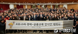 (조세금융신문=김사선 기자) KB금융그룹(회장 윤종규)과 KB금융공익재단은 8일 오전 KB국민은행 일산연수원에서 862명의 지주 및 계열사 재직강사, 재단 소속 퇴직강사, 대학생 강사단 중 270여명이 참석한 가운데 'KB 경제·금융교육' 강사단 세미나를 개최, 2016년 힘찬 발걸음을 시작했다.이날 행사는 실무위주의 교육과 세미나식 토론을 통한 강의 수준 제고 및 경제금융교육의 효과적인 추진에 중점을 두고 이루어졌으며, 기존 연간 1회 운영되던 세미나를 상하반기 2회로 운영하여 최고 수준의 강의와 교육 효과를 더욱 견고하게 발전 시키기로 했다.2012년부터 지속적인 활동을 펼치고 있는 'KB 경제·금융교육' 강사단은 교육을 요청하는 초/중/고/대학생, 사회초년생, 학부모, 골든라이프 세대 등을 직접 찾아가 교육을 실시하고 있으며, 2015년까지의 수강 교육생이 약 39만 2천여명에 이를 정도로 대표적 경제금융교육의 산실로 자리잡고 있다.KB금융그룹은 향후에도 그룹 대표 사회공헌사업인 KB경제ㆍ금융교육을 통해 국민 모두의 경제·금융지식 함양에 앞장서고 더불어 우리 사회 어려운 이웃들의 경제적 지위 향상에 도움을 주기 위해 노력할 예정이다.
