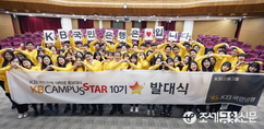 (조세금융신문=김사선 기자) KB국민은행(은행장 윤종규/www.kbstar.com)은 지난 22일부터 1박2일 일정으로 일산연수원에서 대학생 홍보대사 ‘KB캠퍼스스타’ 10기 발대식을 개최했다.‘KB캠퍼스스타’는 KB국민은행 브랜드를 대외적으로 적극 홍보하고 다양한 사회공헌활동과 참신한 아이디어 제안 등을 통해 KB국민은행의 미래를 만들어 가는 대학생 홍보대사다. 1차 서류전형, 2차 면접을 거쳐 최종 선발된 70명의 홍보대사들은 8월까지 6개월 동안 활동하게 된다. 대학생 홍보대사 중 우수 활동자는 KB국민은행 지원 시 서류전형 면제 혜택을, 우수 활동팀에게는 해외 연수 기회도 주어진다. 특히 이번 KB캠퍼스스타 10기부터는 직원 멘토와 함께 KB국민은행 홍보 프로젝트의 기획부터 진행까지 직접 참여하게 된다. 학생들은 홍보 및 마케팅 업무를 실무적으로 체험할 수 있으며, KB국민은행은 대학생 홍보대사들의 기발하고 톡톡 튀는 아이디어를 업무에 적극 반영할 예정이다. KB국민은행 관계자는 “KB캠퍼스스타 10기와 함께 Youth 고객들이 많은 관심을 갖고 있는 문화, 취업 등을 주제로 이색적인 홍보 프로젝트도 기획하고 있다.”며,“대학생들의 아이디어와 열정을