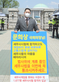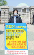 (조세금융신문=김용진 기자) 안성훈 제56기 세무사 시험 합격자가 23일 오전 국회 정문 앞에서 문희상 국회의장에게 "이경수 동기 회장 외 1677명의 세무사 시험 합격자들이 등록을 못해 무직으로 몰리는 고통을 겪고 있다"며 "국회 법사위에 계류중인 세무사법을 조속히 통과 시켜 달라"는 1인 시위를 하고 있다. [조세금융신문(tfmedia.co.kr), 무단전재 및 재배포 금지]