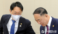 (조세금융신문=김용진 기자) 홍남기 경제 부총리 겸 기획재정부 장관이 김현준 국세청장이 28일 오전 국회에서 열린 기획재정위원회 전체회의에서 대화를 하고 있다. [조세금융신문(tfmedia.co.kr), 무단전재 및 재배포 금지]