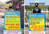 (조세금융신문=김용진 기자) 오늘 법사위 전체회의가 19시 30분 예정된 가운데 윤수정 한국세무사고시회 상임이사(왼쪽)가 여상규 법사위 위원장 자택 앞에서 1인 시위를 하고 있다. 또한 제56기 강용근 세무사시험 합격자(오른쪽)는 국회 정문 앞에서 국회 법사위에 계류중인 세무사법을 조속히 통과 시켜 달라며 시위를 하고 있다. [조세금융신문(tfmedia.co.kr), 무단전재 및 재배포 금지]