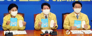 (조세금융신문=김용진 기자) 이인영 더불어민주당 원내대표(가운데)가 24일 오전 국회에서 열린 코로나19 국난극복위원회 실행회의에 앞서 의원들과 마스크를 착용하고, 정부의 정책에 동참할 것을 당부하고 있다. [조세금융신문(tfmedia.co.kr), 무단전재 및 재배포 금지]