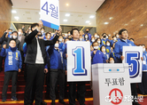 (조세금융신문=김용진 기자) 국민유세본부 들러리유세단 이석현 더불어민주당 단장이 6일 오후 국회에서 열린 출정식에서 파이팅을 외치고 있다 [조세금융신문(tfmedia.co.kr), 무단전재 및 재배포 금지]