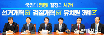 (조세금융신문=김용진 기자) 이인영 더불어민주당 원내대표가 17일 오전 국회에서 열린 원내대표단 상임위간사단 연석회의에서 모두 발언하고 있다. [조세금융신문(tfmedia.co.kr), 무단전재 및 재배포 금지]