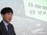 (조세금융신문=김용진 기자) 구기동 신구대학교 교수가 12일 오후 국회의원회관에서 열린 6차 산업과 미래농정 모색을 위한 토론회에서 '6차산업과 미래의 농업, 농촌정책'을 주제로 발표하고 있다. [조세금융신문(tfmedia.co.kr), 무단전재 및 재배포 금지]