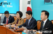 (조세금융신문=김용진 기자) 이해찬 더불어민주당대표가 16일 오전국회에서 열린 최고위원회의에서 발언하고 있다. (오른쪽부터) 이인영 원내대표, 이해찬 대표, 박주민 의원. [조세금융신문(tfmedia.co.kr), 무단전재 및 재배포 금지]