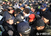 (조세금융신문=김용진 기자) 16일 오전 국회 본청 앞 계단에서 열린 '공수처법 선거법 날치기 저지 규탄대회에서 보수단체 회원들이 '공수처 반대'를 외치며 국회 본청 진입을 시도하고 있다 [조세금융신문(tfmedia.co.kr), 무단전재 및 재배포 금지]