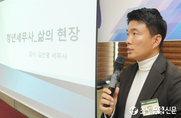(조세금융신문=김용진 기자) 김선명 한국세무사고시회 연수 부회장이 22일 오후 서울 스페이스쉐어 대치센터에서 열린 제56기 한국세무사고시회 신입회원 환영회에서 특강 및 체험사례를 발표 하고 있다.