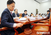 (조세금융신문=김용진 기자) 김정우 조세소위원장이 27일 오전 국회 기재위 소회의실에서 의사봉을 두드리며 개회를 선언하고 있다. [조세금융신문(tfmedia.co.kr), 무단전재 및 재배포 금지]