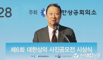 (조세금융신문=김용진 기자) 박용만 대한상공회의소 회장이 28일 오전 서울 대한상공회의소 야외광장에서 열린 제6회 대한상의 사진 공모전 시상및 전시회에서 인사말을 하고 있다. [조세금융신문(tfmedia.co.kr), 무단전재 및 재배포 금지]