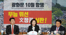 (조세금융신문=김용진 기자) 나경원 자유한국당 원내대표가 25일 오전 국회에서 열린 원내대책회의에서 모두 발언을 하고 있다. 나 원내대표는 이날 원내대책회의에서 “소득주도성장 고집, 현금살포 고집, 국민 빚내기등 고집으로 경제 정책을 일관하고 있다”며 “수치는 거짓말하지 않는다”며 “문재인 대통령이 시정연설 내내 희망 사항만 읊고 간 지 며칠 만에 ‘경제 폭망’이 수치로 드러났다”고 말했다.
