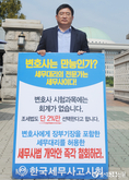 (조세금융신문=김용진 기자)최영환 한국세무사고시회 조직부 상임이사가 1일 오후 국회 정문 앞에서 변호사에게 장부 기장을 포함한 세무대리를 허용한 세무사법 개악안 철회 하라는 1인 시위를 하고있다.