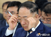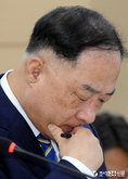 (조세금융신문=김용진 기자)홍남기 경제 부총리 겸 기획재정부 장관이 2일 오전 세종시 기획재정부에서 열린 국정감사에서 안경을 만지며 생각을 하고 있다