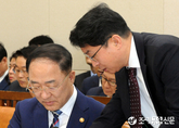 (조세금융신문=김용진 기자)홍남기 경제 부총리 겸 기획재정부 장관이 4일 오전 국회에서 열린 기획재정위원회 조세분야 국정감사에서 관계자와 논의를 하고 있다