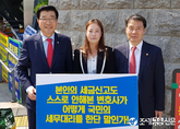 (조세금융신문=김용진 기자)4일 국회 정문 앞에서 원경희 한국세무사회 회장(왼쪽)과 정구정 전 한국세무사회 회장(오른쪽)이 윤수정 한국세무사고시회 재무대외협력부회장(가운데)의 세무사법 개악안 철회 1인시위에 동참하고있다.[사진=한국세무사고시회 제공]