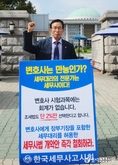 (조세금융신문=김용진 기자)박내천 한국세무사고시회 이사(전 서울지방세무사회 홍보 이사)가 23일 오후 국회 정문 앞에서 변호사에게 장부 기장을 포함한 세무대리를 허용한 세무사법 개악안 철회 하라는1인 시위를 하고 있다.