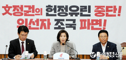 (조세금융신문=김용진 기자) 나경원 자유한국당 원내대표가 20일 오전 국회에서 열린 원내대책회의 모두 발언에서"이번 정기국회 국정감사는 권력형 비리 진상규명 국감이 될 수밖에 없다"고 말하고 있다.