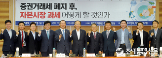 (조세금융신문=김용진 기자)최운열 더불어민주당 의원과 추경호 자유한국당 의원이 '증권거래세 폐지 후, 자본시장 과세 어떻케 할 것인가' 토론회에서 참석자들과기념촬영하고 있다.