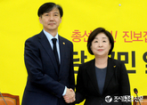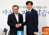 (조세금융신문=김용진 기자)이해찬 더불어민주당 대표가 17일 오전 국회 더불어민주당을 예방한 조국 신임 법무부 장관과 인사를 하고 있다.