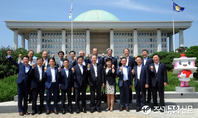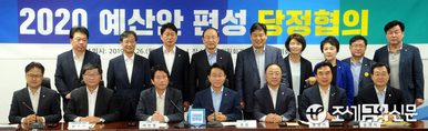 (조세금융신문=김용진 기자)이인영 더불어민주당 원내대표와 홍남기 경제 부총리 겸 기획재정부 장관이 26일 오전 국회의원회관에서 열린 2020 예산안 당정 협의회에 앞서 참석자들과 기념 촬영을 하고 있다.