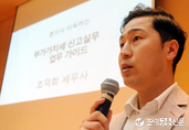(조세금융신문=김용진 기자)조덕희 세무사가 27일 오전 서울 한국교회100주년기념관에서 열린 2019 부가가치세 및 원천 징수 4대 보험 교육에서 개정세법 강의를 하고 있다.
