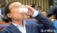 (조세금융신문=김용진 기자)이해찬 더불어민주당 대표가 21일 오후 국회에서 열린 의원총회에서 물을 마시고 있다.