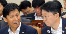 (조세금융신문=김용진 기자)김영문 관세청장과 김현준 국세청장이 22일 오전 국회에서 열린 기획재정위원회 전체회의에서 대화를 하고 있다.