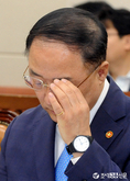 (조세금융신문=김용진 기자) 홍남기 경제 부총리 겸 기획재정부 장관이 12일 오전 국회에서 열린 기획재정위원회 전체회의에서 안경을 만지며 생각을 하고 있다.